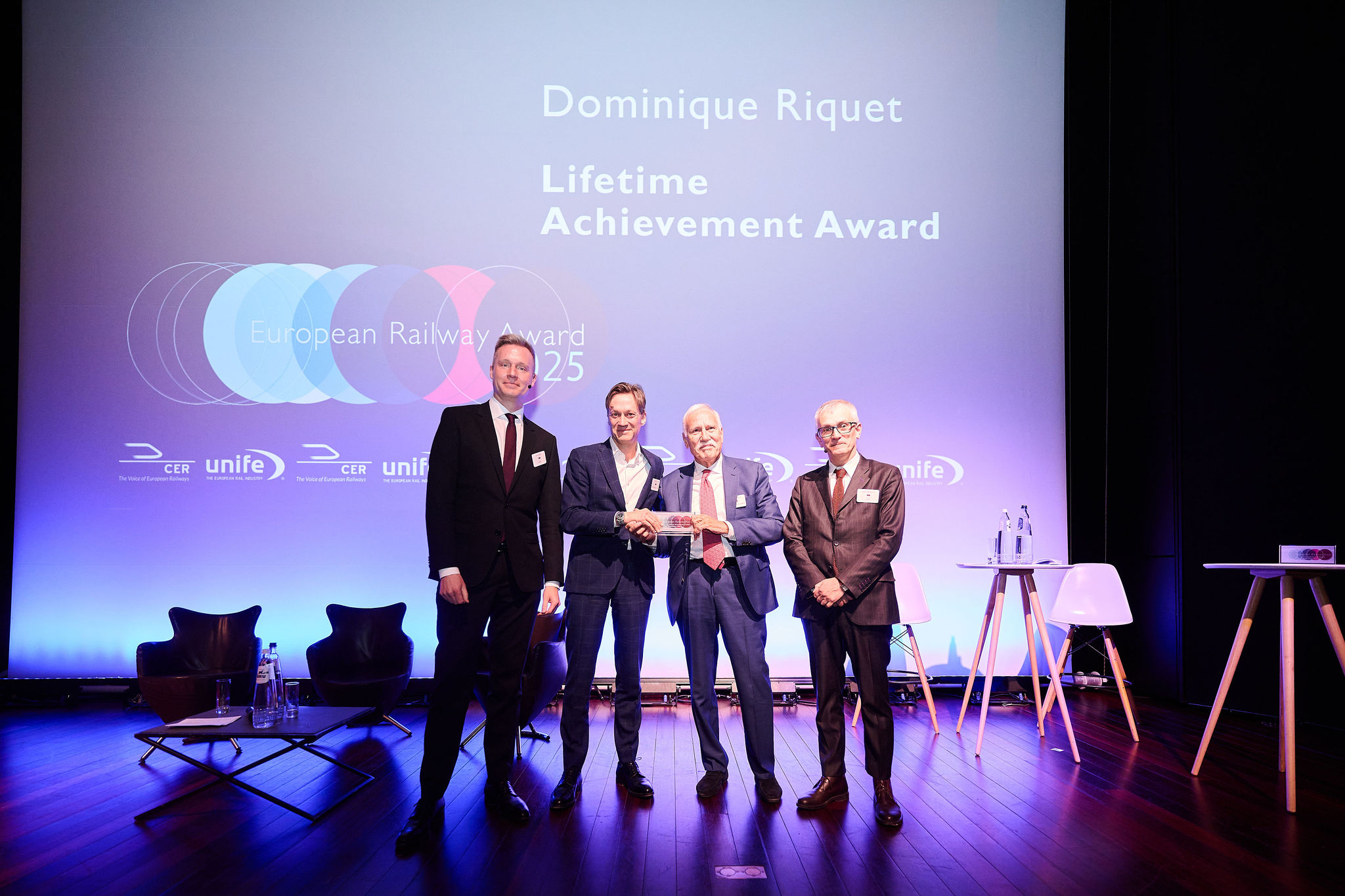 Jointly organised by CER and UNIFE, the 2025 edition bestowed three awards during a prestigious ceremony at Belgium’s Royal Museums of Fine Arts in Brussels. ‘A new journey for Europe’s rail: From Inspiration to Realisation’ was the theme of this year’s awards, which paid tribute to three driving forces for rail who helped pave the way to today’s time for action.