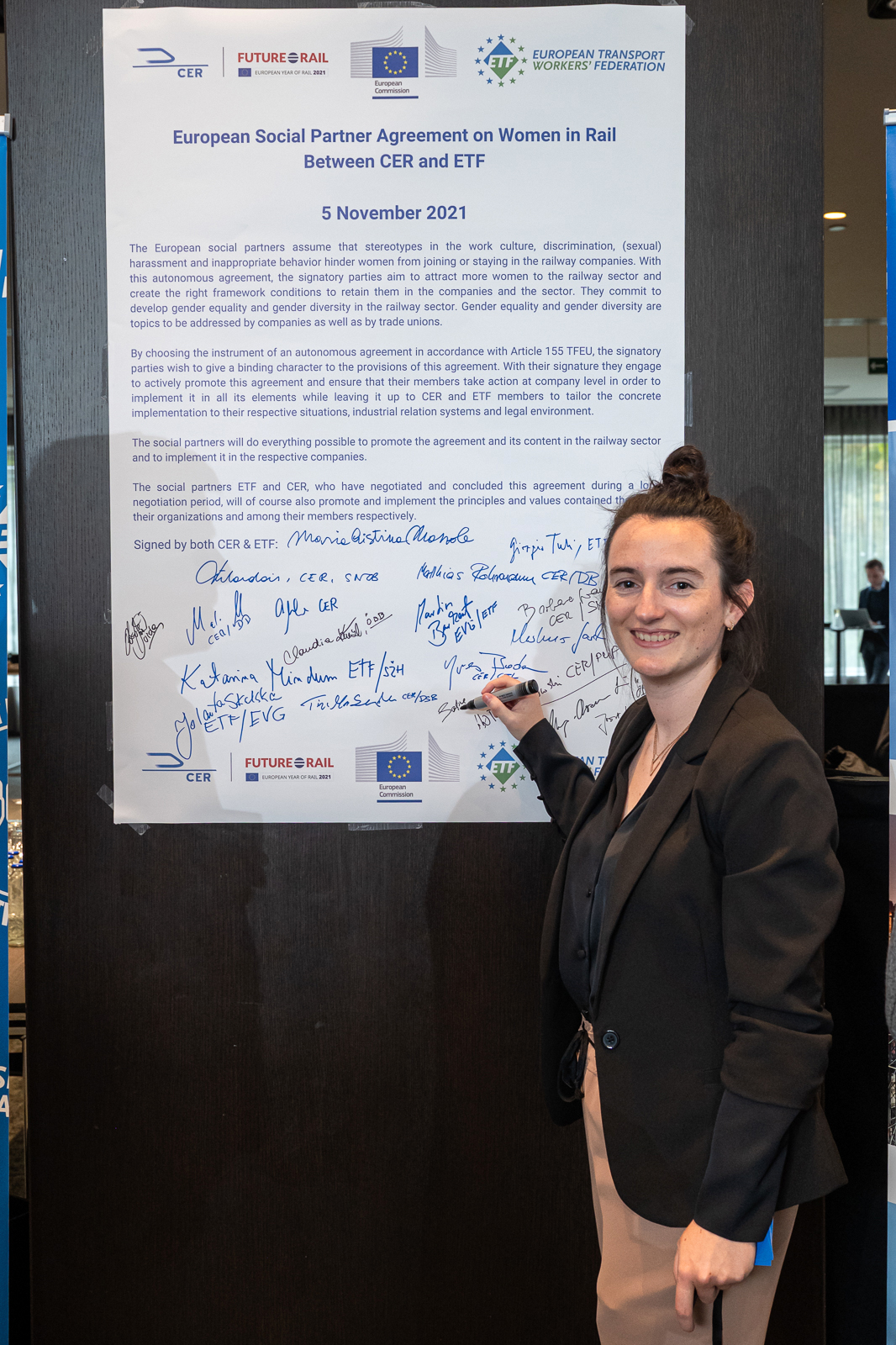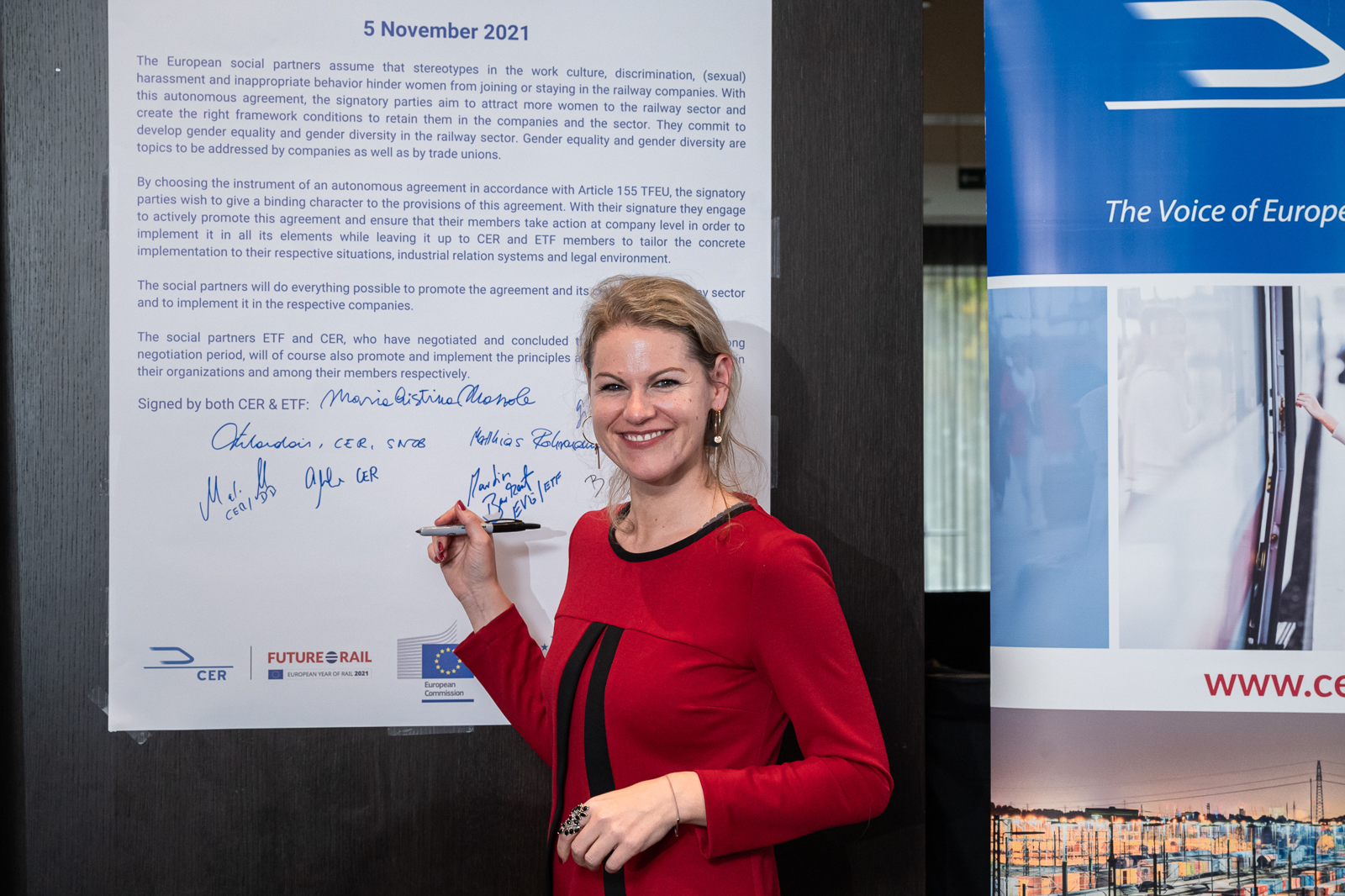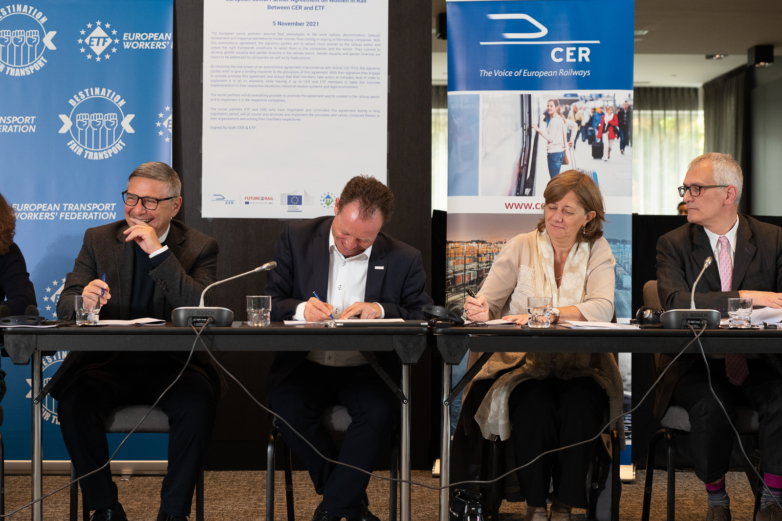 On 5 November 2021, CER and ETF officially signed the Women in Rail autonomous agreement aimed at promoting employment of women in the sector.