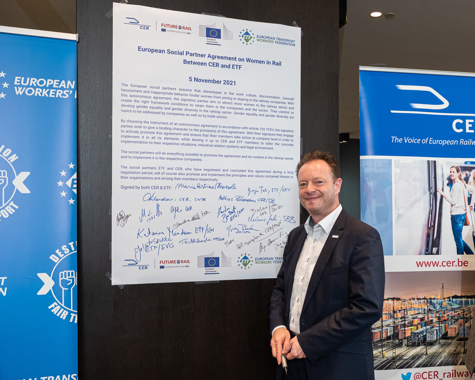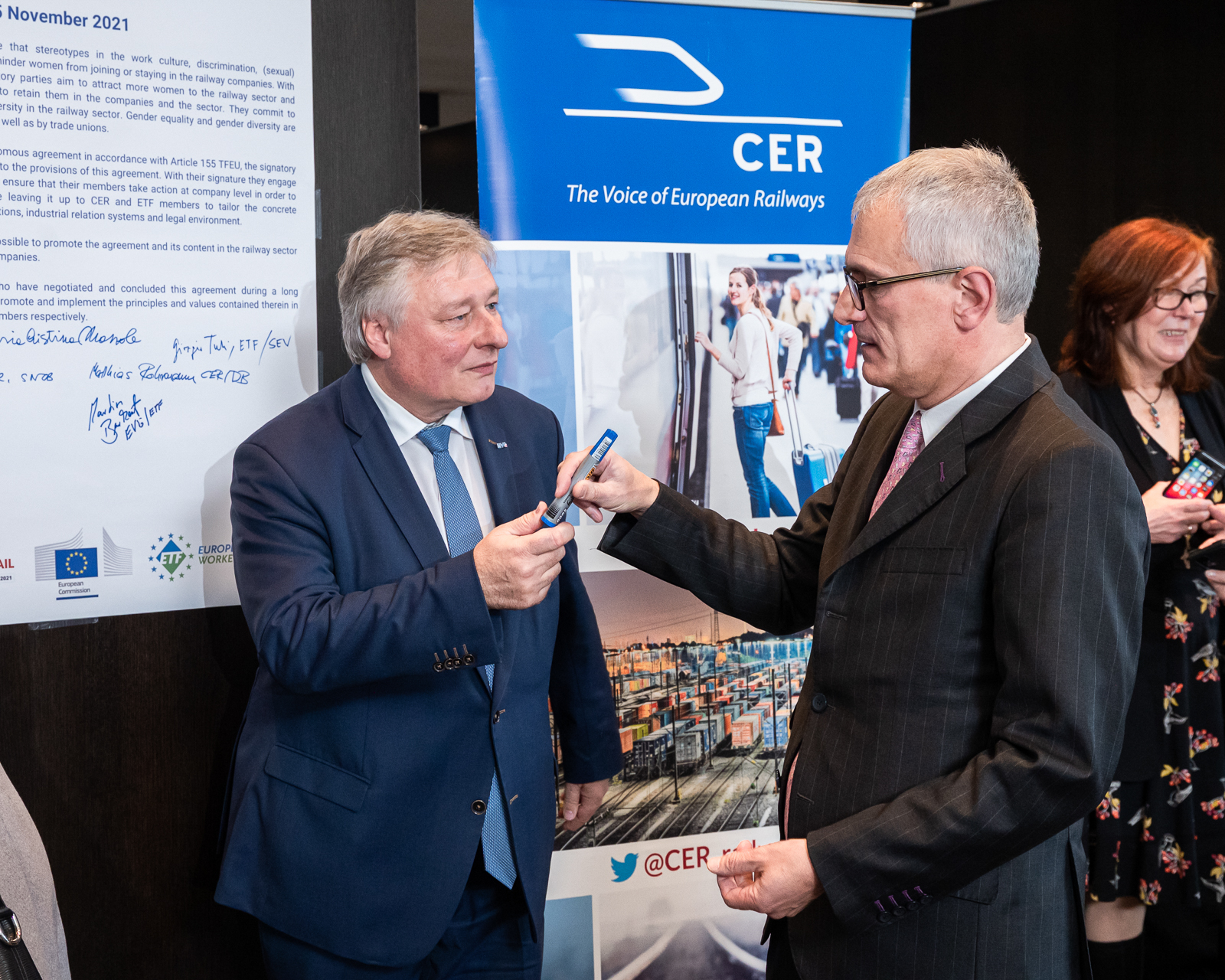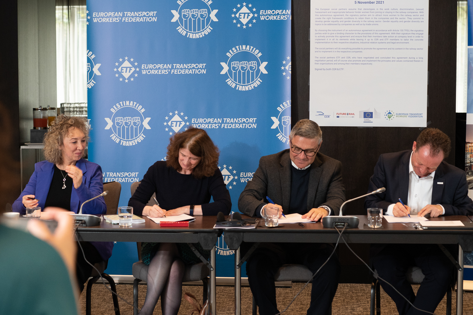 On 5 November 2021, CER and ETF officially signed the Women in Rail autonomous agreement aimed at promoting employment of women in the sector.